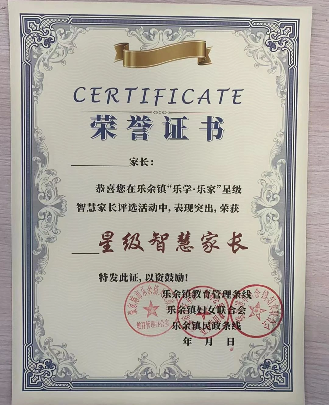 “学习积分不仅能换星级证书,更重要的是感觉自己进步了,孩子也更认可我了。”参与“星级智慧家长”评定的李爸爸说道。为有效激励家长持续学习、主动参与,乐余镇首创《“乐学・乐家” 星级智慧家长评定办法》。